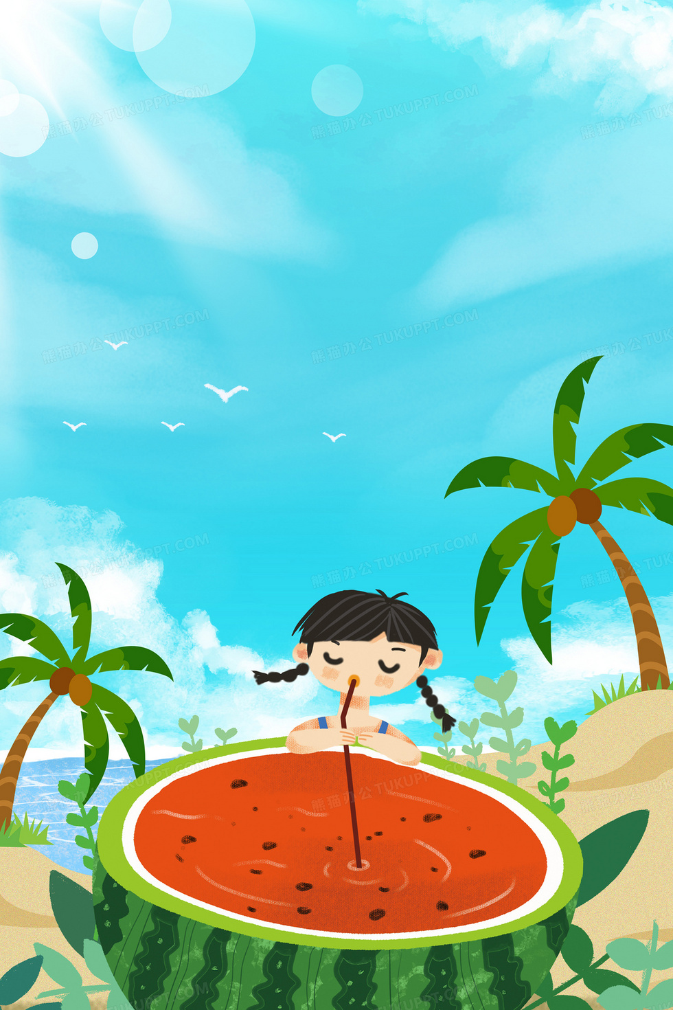 本作品内容为西瓜女孩沙滩椰树二十四节气夏至背景, 格式为 psd, 大小98 MB, 图片尺寸为3543 x 5315, 作品中背景图片无需修改, 源文件无水印,可以直接使用, 欢迎使用熊猫办公。 如认为平台内容涉嫌侵权,可通过邮件:tousu@tukuppt.com提出书面通知,我们将及时处理。
