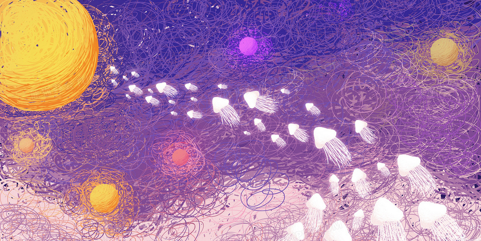 本作品内容为治愈系线圈画水母星球, 格式为 psd, 大小32 MB, 图片尺寸为3508 x 1758, 作品中背景图片无需修改, 源文件无水印,可以直接使用, 欢迎使用熊猫办公。 如认为平台内容涉嫌侵权,可通过邮件:tousu@tukuppt.com提出书面通知,我们将及时处理。