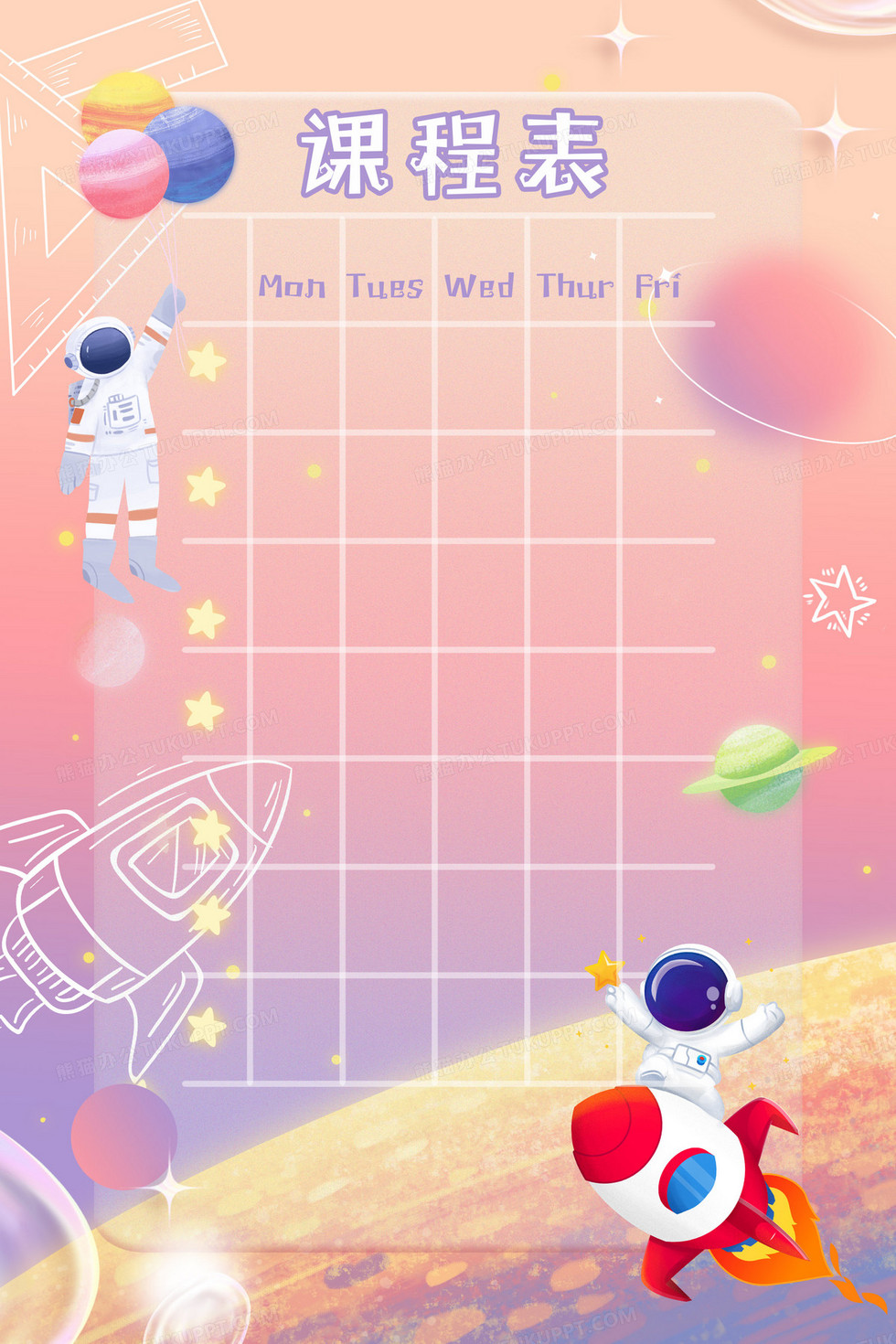 本作品内容为梦幻宇宙星球课程表背景, 格式为 psd, 大小54 MB, 图片尺寸为2362 x 3543, 作品中背景图片无需修改, 源文件无水印,可以直接使用, 欢迎使用熊猫办公。 如认为平台内容涉嫌侵权,可通过邮件:tousu@tukuppt.com提出书面通知,我们将及时处理。