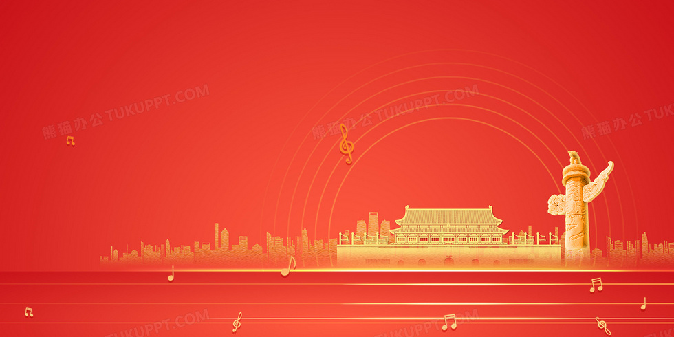 本作品内容为红色渐变天安门歌颂创意金色背景, 格式为 psd, 大小26 MB, 图片尺寸为4724 x 2362, 作品中背景图片无需修改, 源文件无水印,可以直接使用, 欢迎使用熊猫办公。 如认为平台内容涉嫌侵权,可通过邮件:tousu@tukuppt.com提出书面通知,我们将及时处理。