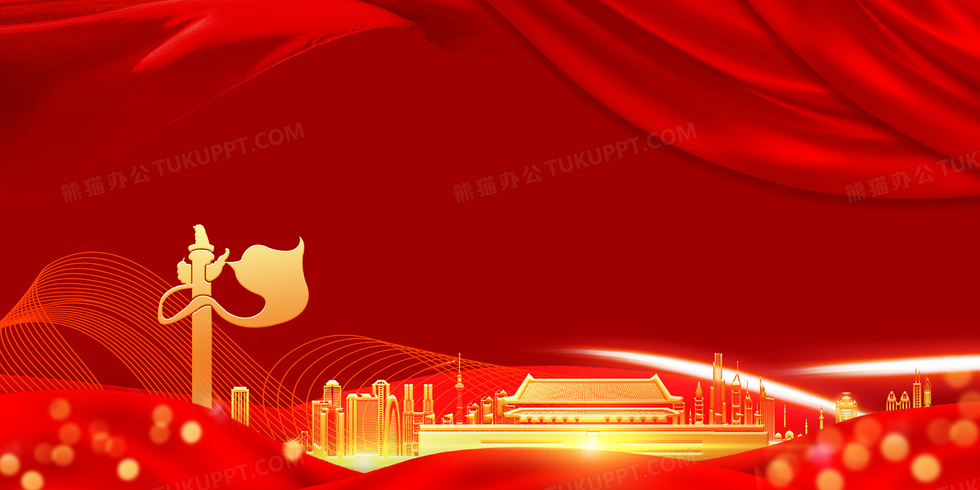 本作品内容为党政建设国庆背景, 格式为 psd, 大小56 MB, 图片尺寸为4722 x 2361, 作品中背景图片无需修改, 源文件无水印,可以直接使用, 欢迎使用熊猫办公。 如认为平台内容涉嫌侵权,可通过邮件:tousu@tukuppt.com提出书面通知,我们将及时处理。