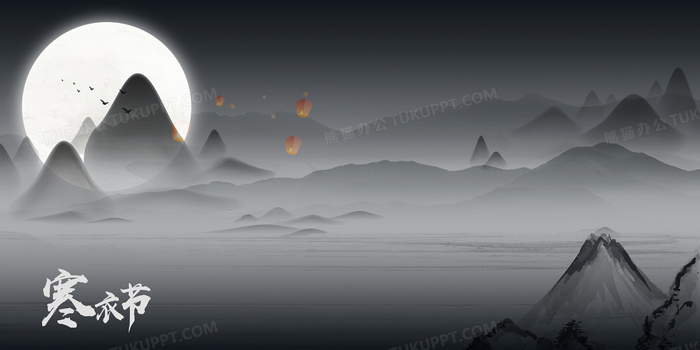 本作品内容为国风水墨寒衣节背景图, 格式为 psd, 大小41 MB, 图片尺寸为4724 x 2362, 作品中背景图片无需修改, 源文件无水印,可以直接使用, 欢迎使用熊猫办公。 如认为平台内容涉嫌侵权,可通过邮件:tousu@tukuppt.com提出书面通知,我们将及时处理。