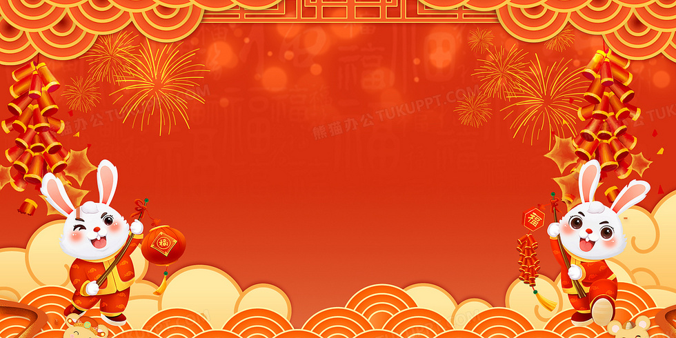 本作品内容为中国风双兔拜年背景图, 格式为 psd, 大小73 MB, 图片尺寸为7087 x 3543, 作品中背景图片无需修改, 源文件无水印,可以直接使用, 欢迎使用熊猫办公。 如认为平台内容涉嫌侵权,可通过邮件:tousu@tukuppt.com提出书面通知,我们将及时处理。