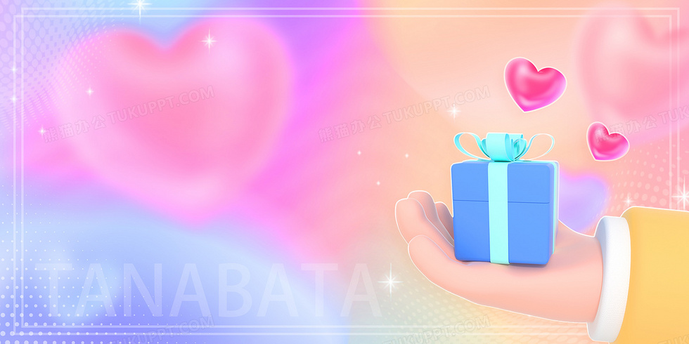 本作品内容为黏土3D立体弥散风七夕情人节礼物背景, 格式为 psd, 大小47 MB, 图片尺寸为4724 x 2362, 作品中背景图片无需修改, 源文件无水印,可以直接使用, 欢迎使用熊猫办公。 如认为平台内容涉嫌侵权,可通过邮件:tousu@tukuppt.com提出书面通知,我们将及时处理。