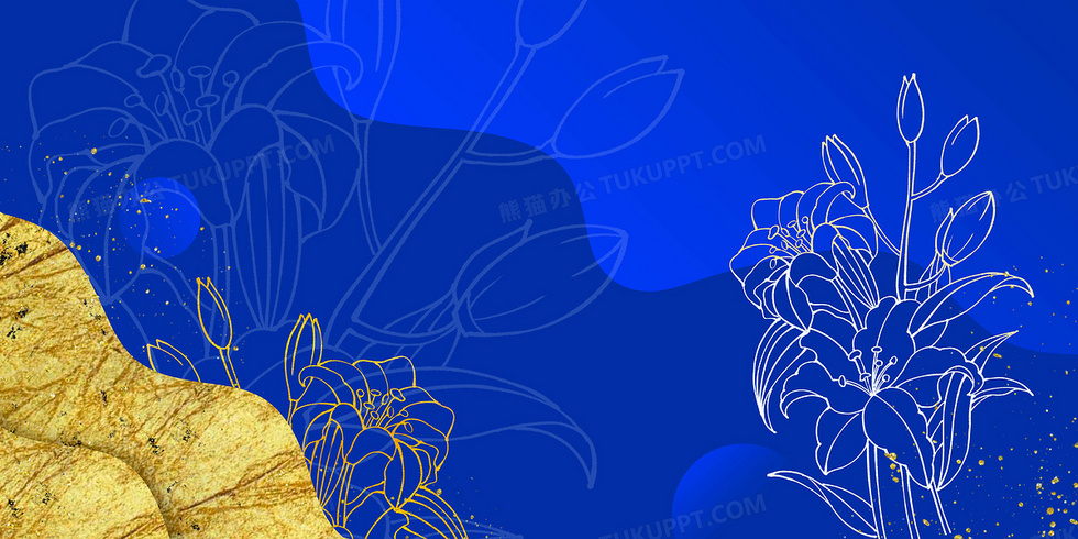 本作品内容为创意克莱因蓝手绘线描植物金箔背景, 格式为 psd, 大小52 MB, 图片尺寸为4724 x 2362, 作品中背景图片无需修改, 源文件无水印,可以直接使用, 欢迎使用熊猫办公。 如认为平台内容涉嫌侵权,可通过邮件:tousu@tukuppt.com提出书面通知,我们将及时处理。