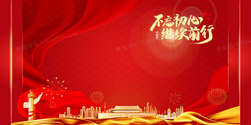 本作品内容为红色党政不忘初心继续前行创意背景, 格式为 psd, 大小59 MB, 图片尺寸为4724 x 2362, 作品中背景图片无需修改, 源文件无水印,可以直接使用, 欢迎使用熊猫办公。 如认为平台内容涉嫌侵权,可通过邮件:tousu@tukuppt.com提出书面通知,我们将及时处理。