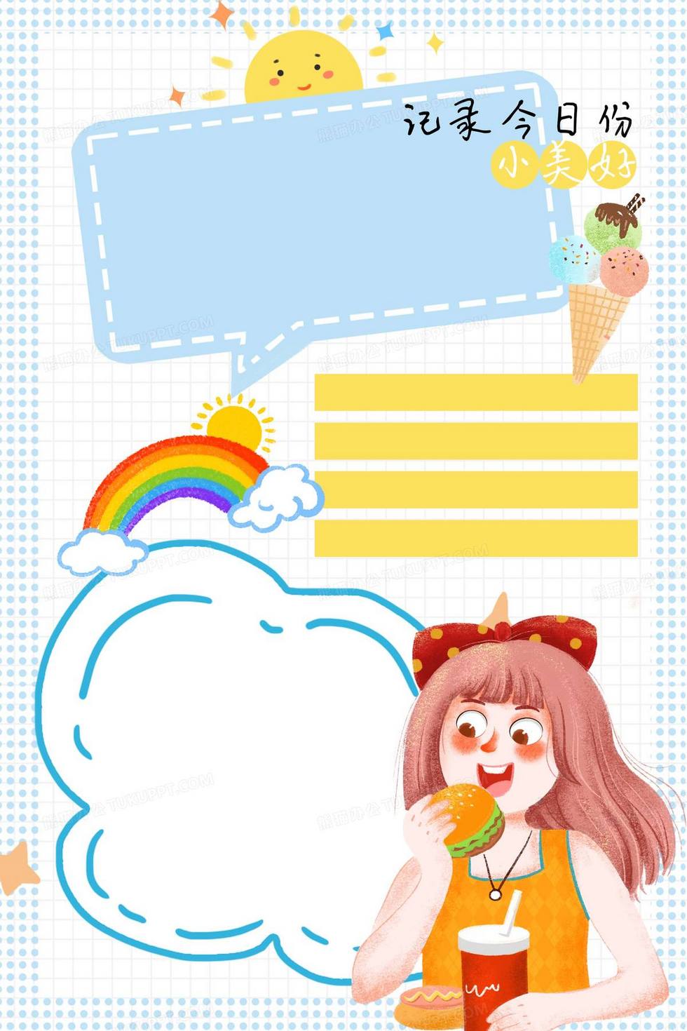本作品内容为清新卡通手绘手账背景, 格式为 psd, 大小9 MB, 图片尺寸为2362 x 3543, 作品中背景图片无需修改, 源文件无水印,可以直接使用, 欢迎使用熊猫办公。 如认为平台内容涉嫌侵权,可通过邮件:tousu@tukuppt.com提出书面通知,我们将及时处理。