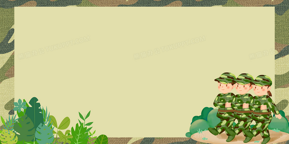 本作品内容为手绘卡通军事训练边框背景, 格式为 psd, 大小41 MB, 图片尺寸为4724 x 2362, 作品中背景图片无需修改, 源文件无水印,可以直接使用, 欢迎使用熊猫办公。 如认为平台内容涉嫌侵权,可通过邮件:tousu@tukuppt.com提出书面通知,我们将及时处理。