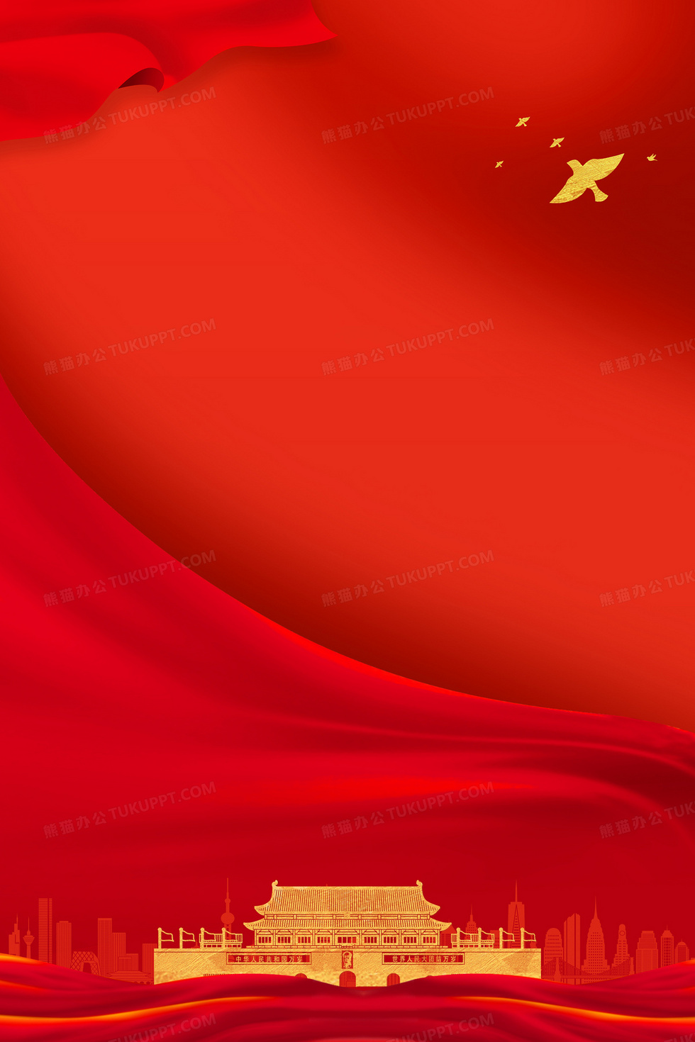 本作品内容为红金天安门丝绸红旗党政背景, 格式为 psd, 大小39 MB, 图片尺寸为3543 x 5315, 作品中背景图片无需修改, 源文件无水印,可以直接使用, 欢迎使用熊猫办公。 如认为平台内容涉嫌侵权,可通过邮件:tousu@tukuppt.com提出书面通知,我们将及时处理。