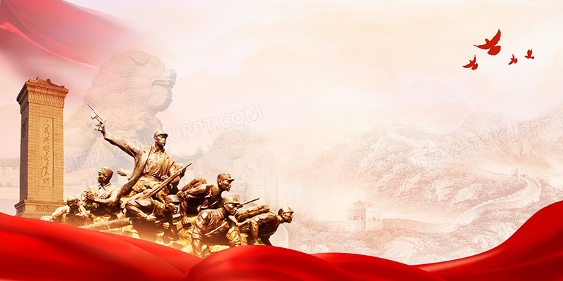 本作品内容为七七卢沟桥事变革命雕塑党政党建背景, 格式为 psd, 大小55 MB, 图片尺寸为4724 x 2362, 作品中背景图片无需修改, 源文件无水印,可以直接使用, 欢迎使用熊猫办公。 如认为平台内容涉嫌侵权,可通过邮件:tousu@tukuppt.com提出书面通知,我们将及时处理。