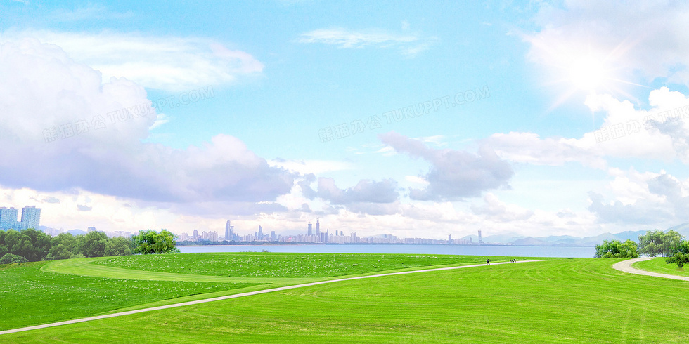 本作品内容为蓝天白云清新草地城市摄影图合成背景, 格式为 psd, 大小76 MB, 图片尺寸为4724 x 2362, 作品中背景图片无需修改, 源文件无水印,可以直接使用, 欢迎使用熊猫办公。 如认为平台内容涉嫌侵权,可通过邮件:tousu@tukuppt.com提出书面通知,我们将及时处理。