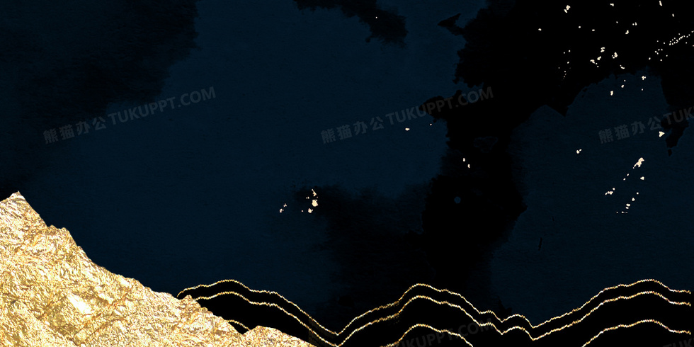 本作品内容为黑色质感简约鎏金纹理背景, 格式为 psd, 大小21 MB, 图片尺寸为3543 x 1772, 作品中背景图片无需修改, 源文件无水印,可以直接使用, 欢迎使用熊猫办公。 如认为平台内容涉嫌侵权,可通过邮件:tousu@tukuppt.com提出书面通知,我们将及时处理。