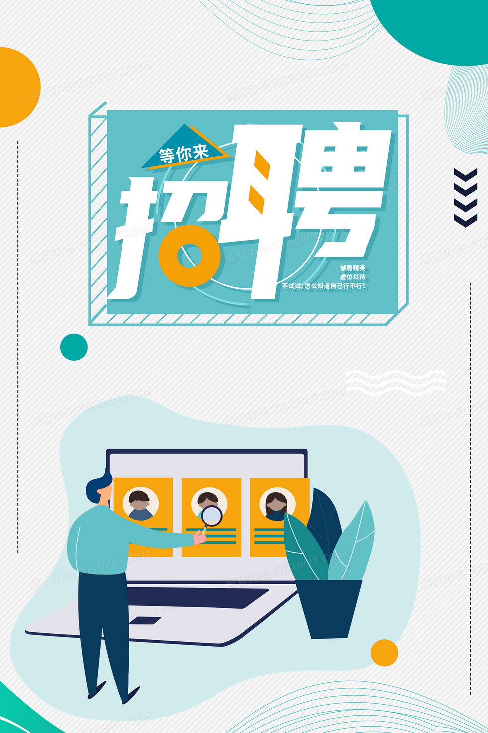 本作品内容为商务清新扁平几何企业招聘背景, 格式为 psd, 大小25 MB, 图片尺寸为3543 x 5315, 作品中背景图片无需修改, 源文件无水印,可以直接使用, 欢迎使用熊猫办公。 如认为平台内容涉嫌侵权,可通过邮件:tousu@tukuppt.com提出书面通知,我们将及时处理。