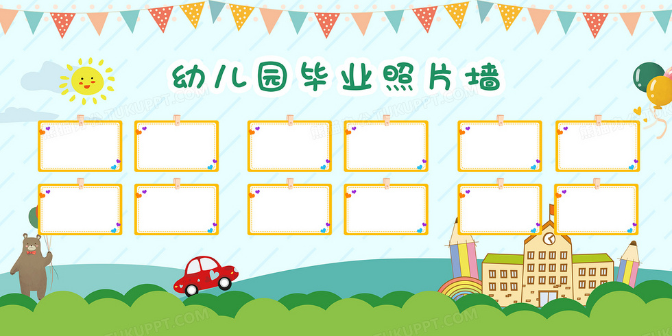 本作品内容为卡通手绘风幼儿园毕业照片墙, 格式为 psd, 大小9 MB, 图片尺寸为4724 x 2362, 作品中背景图片无需修改, 源文件无水印,可以直接使用, 欢迎使用熊猫办公。 如认为平台内容涉嫌侵权,可通过邮件:tousu@tukuppt.com提出书面通知,我们将及时处理。