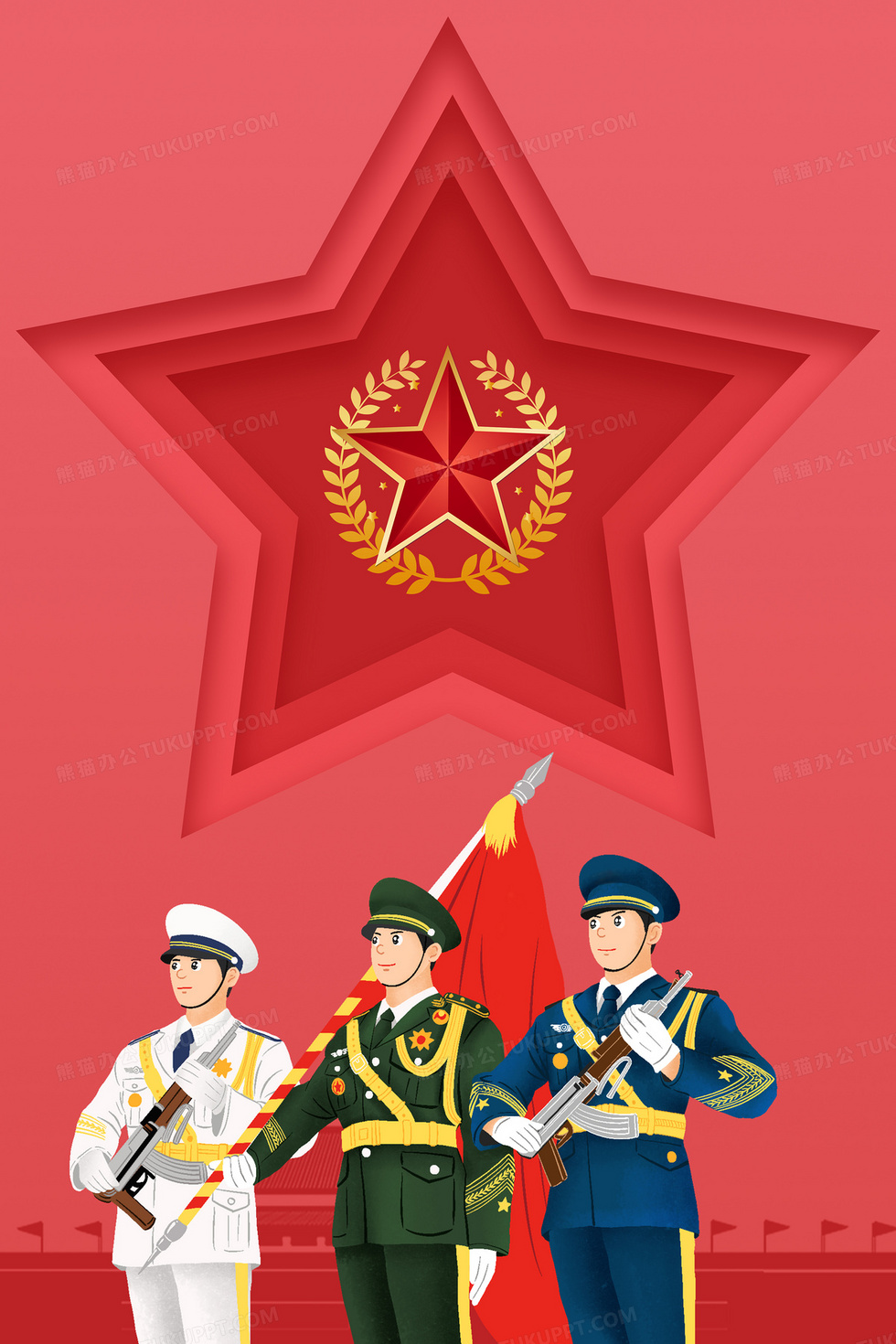 本作品内容为创意手绘卡通建军节海报背景, 格式为 psd, 大小36 MB, 图片尺寸为3543 x 5315, 作品中背景图片无需修改, 源文件无水印,可以直接使用, 欢迎使用熊猫办公。 如认为平台内容涉嫌侵权,可通过邮件:tousu@tukuppt.com提出书面通知,我们将及时处理。