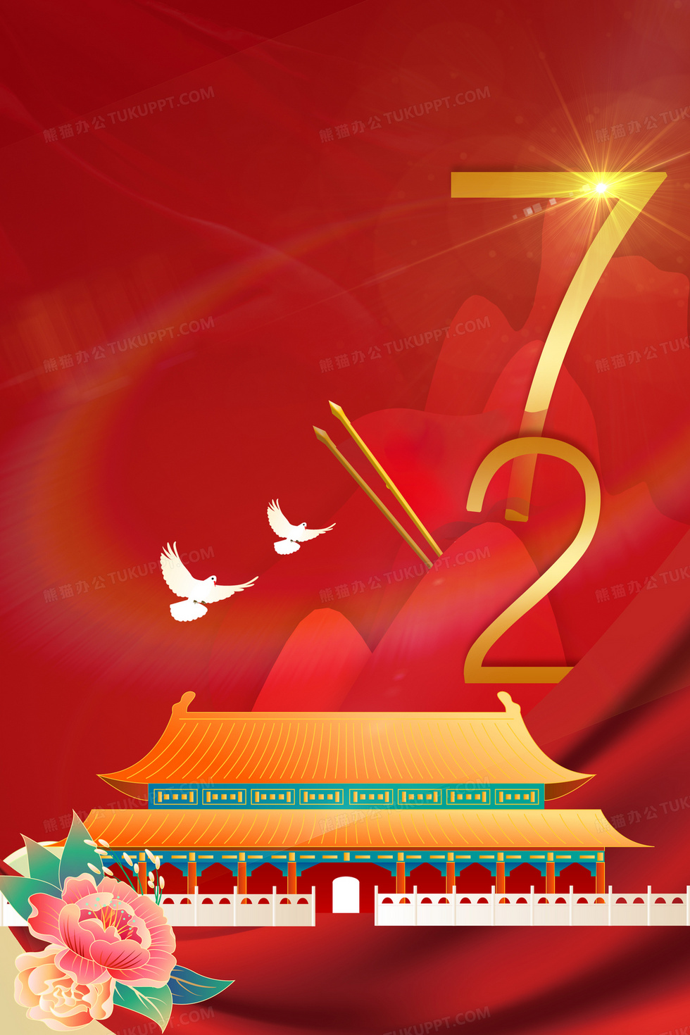 本作品内容为红色党建风庆祝国庆节72周年创意背景, 格式为 psd, 大小37 MB, 图片尺寸为2362 x 3543, 作品中背景图片无需修改, 源文件无水印,可以直接使用, 欢迎使用熊猫办公。 如认为平台内容涉嫌侵权,可通过邮件:tousu@tukuppt.com提出书面通知,我们将及时处理。