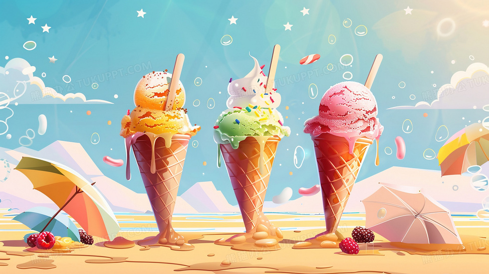 本作品内容为夏季沙滩冷饮冰激凌插画, 格式为 jpg, 大小3 MB, 图片尺寸为2912 x 1632, 源文件无水印, 欢迎使用熊猫办公。 如认为平台内容涉嫌侵权,可通过邮件:tousu@tukuppt.com提出书面通知,我们将及时处理。