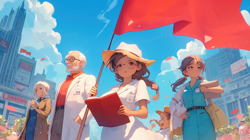 本作品内容为51劳动节红旗下各个行业人物插画, 格式为 jpg, 大小3 MB, 图片尺寸为2912 x 1632, 源文件无水印, 欢迎使用熊猫办公。 如认为平台内容涉嫌侵权,可通过邮件:tousu@tukuppt.com提出书面通知,我们将及时处理。