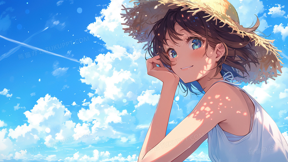 本作品内容为蓝天海边度假的女孩插画, 格式为 jpg, 大小3 MB, 图片尺寸为2912 x 1632, 源文件无水印, 欢迎使用熊猫办公。 如认为平台内容涉嫌侵权,可通过邮件:tousu@tukuppt.com提出书面通知,我们将及时处理。