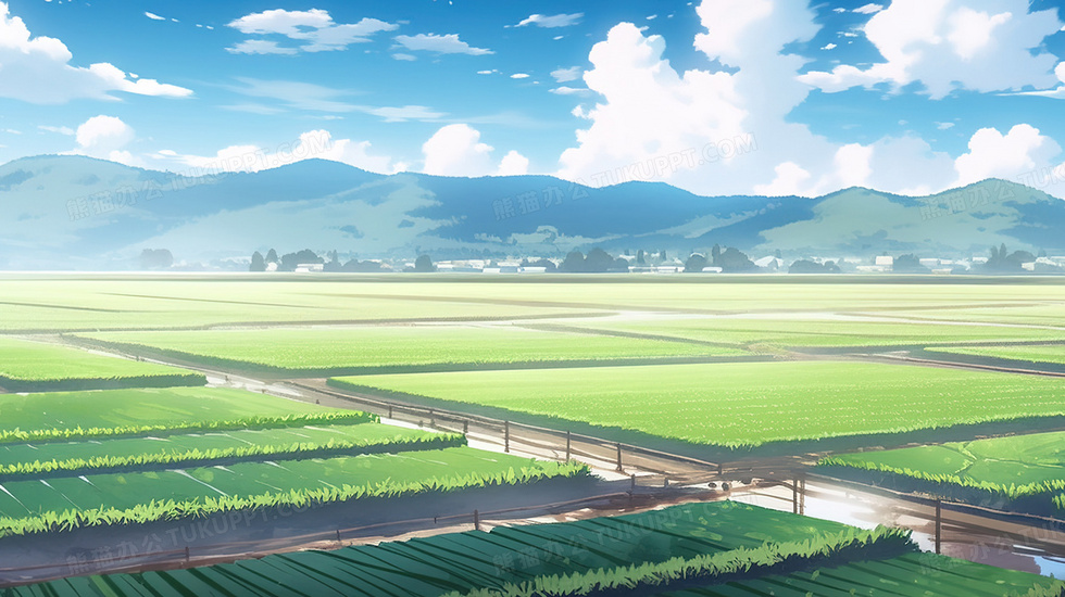 本作品内容为乡村绿色田野庄稼风景插画, 格式为 jpg, 大小3 MB, 图片尺寸为2912 x 1632, 源文件无水印, 欢迎使用熊猫办公。 如认为平台内容涉嫌侵权,可通过邮件:tousu@tukuppt.com提出书面通知,我们将及时处理。