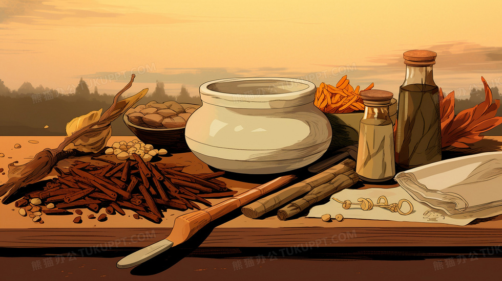 本作品内容为中国风中草药植物中医药罐插画, 格式为 jpg, 大小3 MB, 图片尺寸为2912 x 1632, 源文件无水印, 欢迎使用熊猫办公。 如认为平台内容涉嫌侵权,可通过邮件:tousu@tukuppt.com提出书面通知,我们将及时处理。