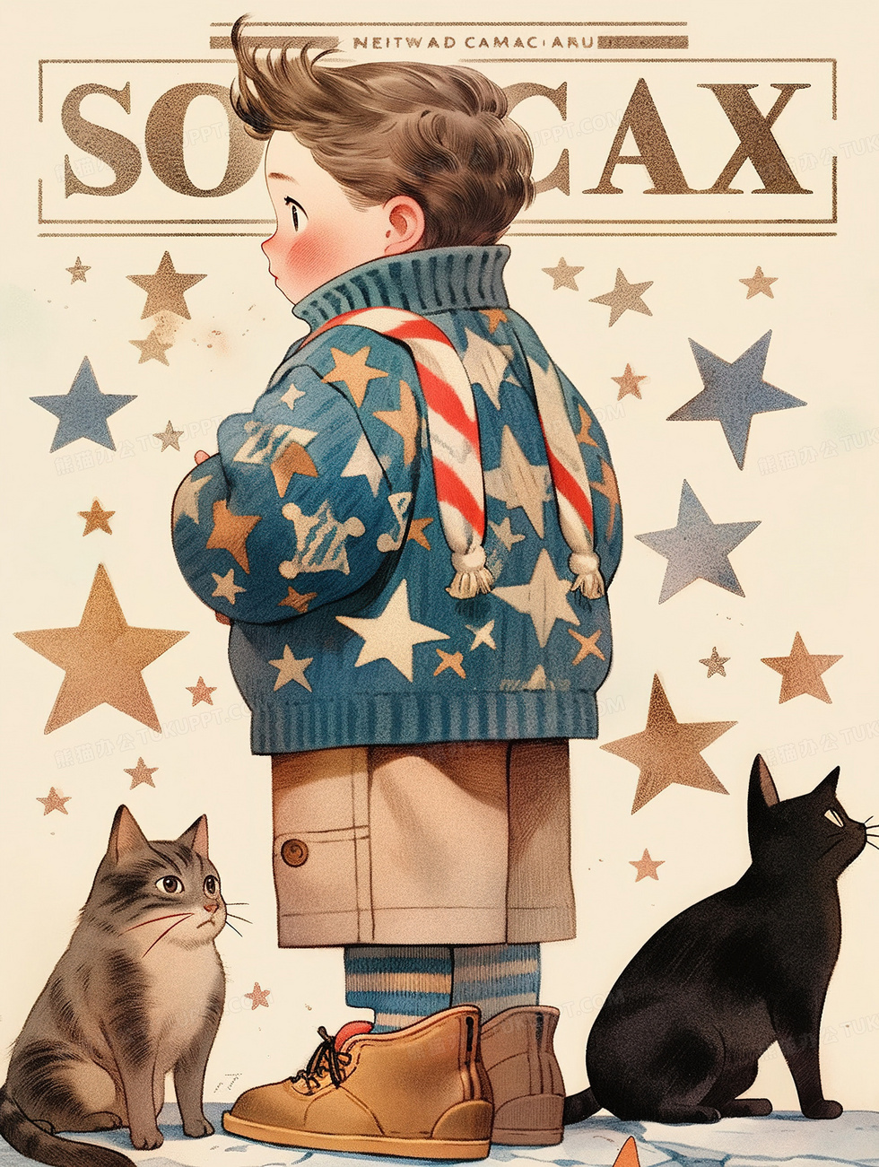 本作品内容为卡通男孩冬季日常穿搭插画, 格式为 jpg, 大小4 MB, 图片尺寸为1856 x 2464, 源文件无水印, 欢迎使用熊猫办公。 如认为平台内容涉嫌侵权,可通过邮件:tousu@tukuppt.com提出书面通知,我们将及时处理。