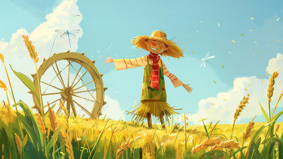 本作品内容为田野里的稻草人水车插画, 格式为 jpg, 大小4 MB, 图片尺寸为2912 x 1632, 源文件无水印, 欢迎使用熊猫办公。 如认为平台内容涉嫌侵权,可通过邮件:tousu@tukuppt.com提出书面通知,我们将及时处理。