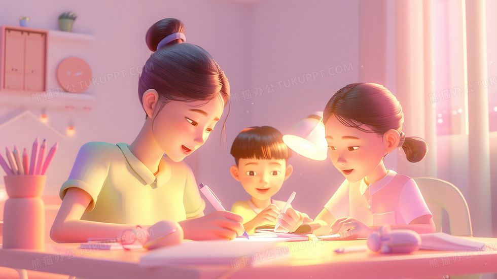 本作品内容为3D立体妈妈陪伴孩子学习插画, 格式为 jpg, 大小3 MB, 图片尺寸为2912 x 1632, 源文件无水印, 欢迎使用熊猫办公。 如认为平台内容涉嫌侵权,可通过邮件:tousu@tukuppt.com提出书面通知,我们将及时处理。