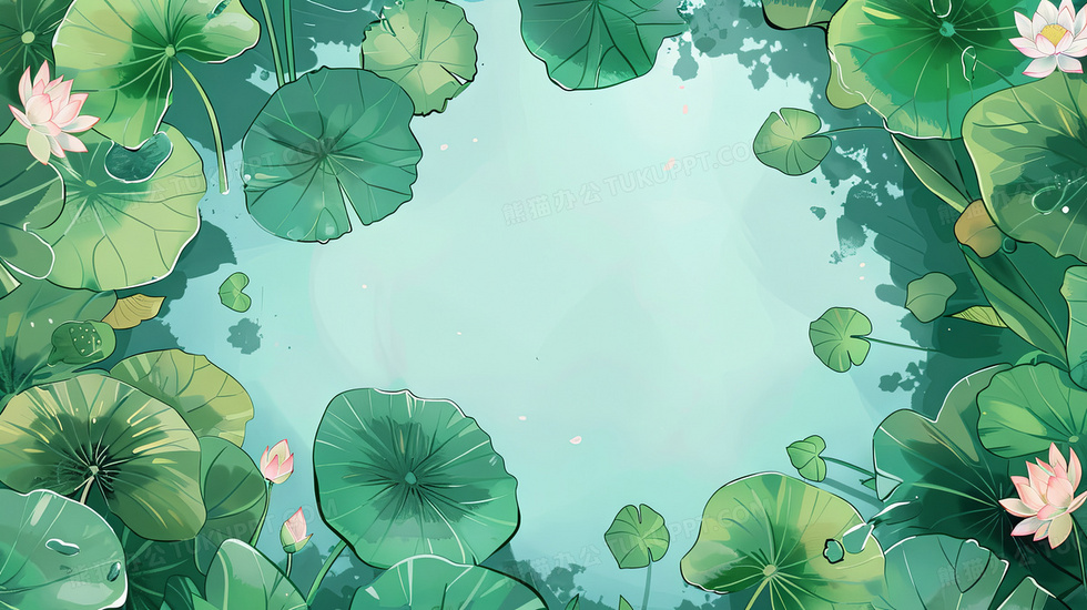 本作品内容为简约卡通夏日荷花边框背景, 格式为 jpg, 大小5 MB, 图片尺寸为2912 x 1632, 作品中背景图片无需修改, 源文件无水印,可以直接使用, 欢迎使用熊猫办公。 如认为平台内容涉嫌侵权,可通过邮件:tousu@tukuppt.com提出书面通知,我们将及时处理。