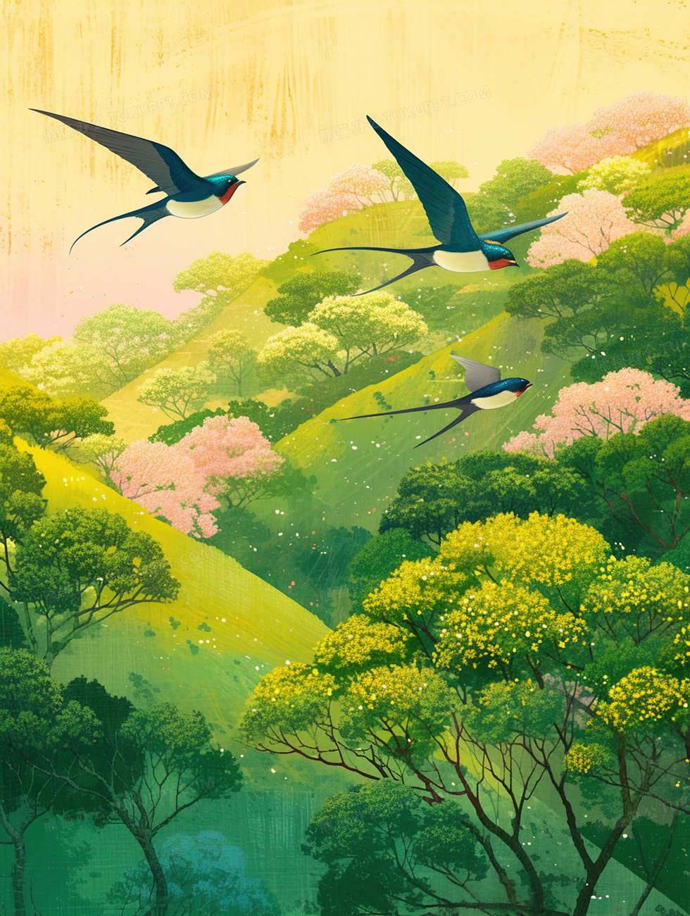 本作品内容为森林里小燕子在天空飞舞插画, 格式为 jpg, 大小4 MB, 图片尺寸为1856 x 2464, 源文件无水印, 欢迎使用熊猫办公。 如认为平台内容涉嫌侵权,可通过邮件:tousu@tukuppt.com提出书面通知,我们将及时处理。