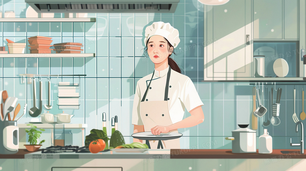 本作品内容为忙碌劳动的美女厨师插画, 格式为 jpg, 大小3 MB, 图片尺寸为2912 x 1632, 源文件无水印, 欢迎使用熊猫办公。 如认为平台内容涉嫌侵权,可通过邮件:tousu@tukuppt.com提出书面通知,我们将及时处理。