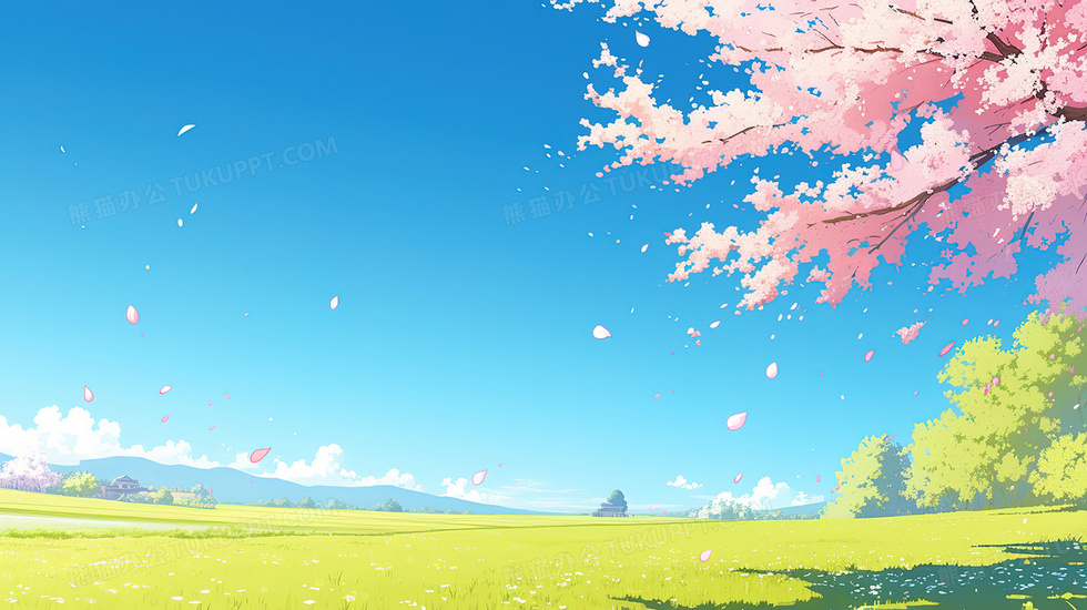 本作品内容为春天野外蓝天白云樱花草坪唯美背景图, 格式为 jpg, 大小3 MB, 图片尺寸为2912 x 1632, 作品中背景图片无需修改, 源文件无水印,可以直接使用, 欢迎使用熊猫办公。 如认为平台内容涉嫌侵权,可通过邮件:tousu@tukuppt.com提出书面通知,我们将及时处理。