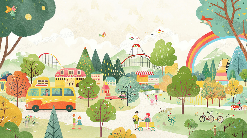 本作品内容为儿童节在彩虹下公园里游乐场边草地上一群人游玩插画, 格式为 jpg, 大小5 MB, 图片尺寸为2912 x 1632, 源文件无水印, 欢迎使用熊猫办公。 如认为平台内容涉嫌侵权,可通过邮件:tousu@tukuppt.com提出书面通知,我们将及时处理。