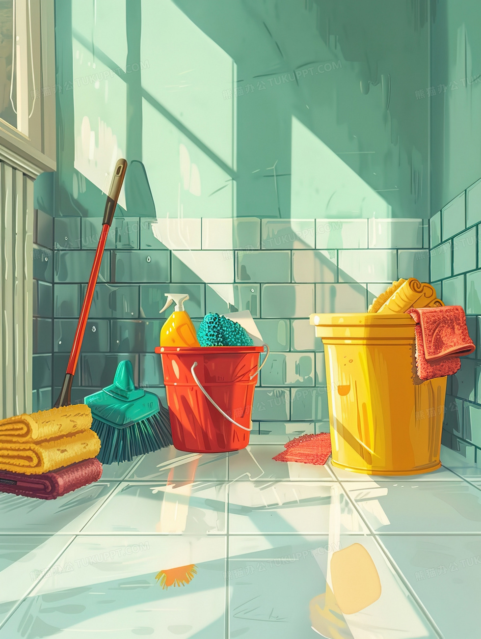 本作品内容为清洁室内的清洁工具插画, 格式为 jpg, 大小2 MB, 图片尺寸为1856 x 2464, 源文件无水印, 欢迎使用熊猫办公。 如认为平台内容涉嫌侵权,可通过邮件:tousu@tukuppt.com提出书面通知,我们将及时处理。