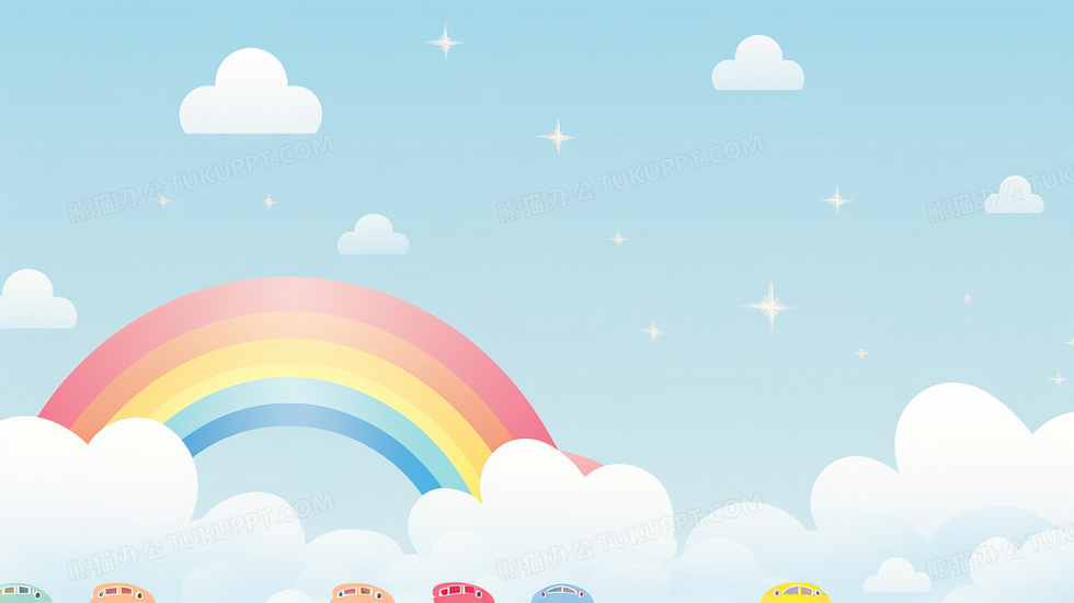本作品内容为彩虹简约卡通梦幻背景, 格式为 jpg, 大小1 MB, 图片尺寸为2912 x 1632, 作品中背景图片无需修改, 源文件无水印,可以直接使用, 欢迎使用熊猫办公。 如认为平台内容涉嫌侵权,可通过邮件:tousu@tukuppt.com提出书面通知,我们将及时处理。