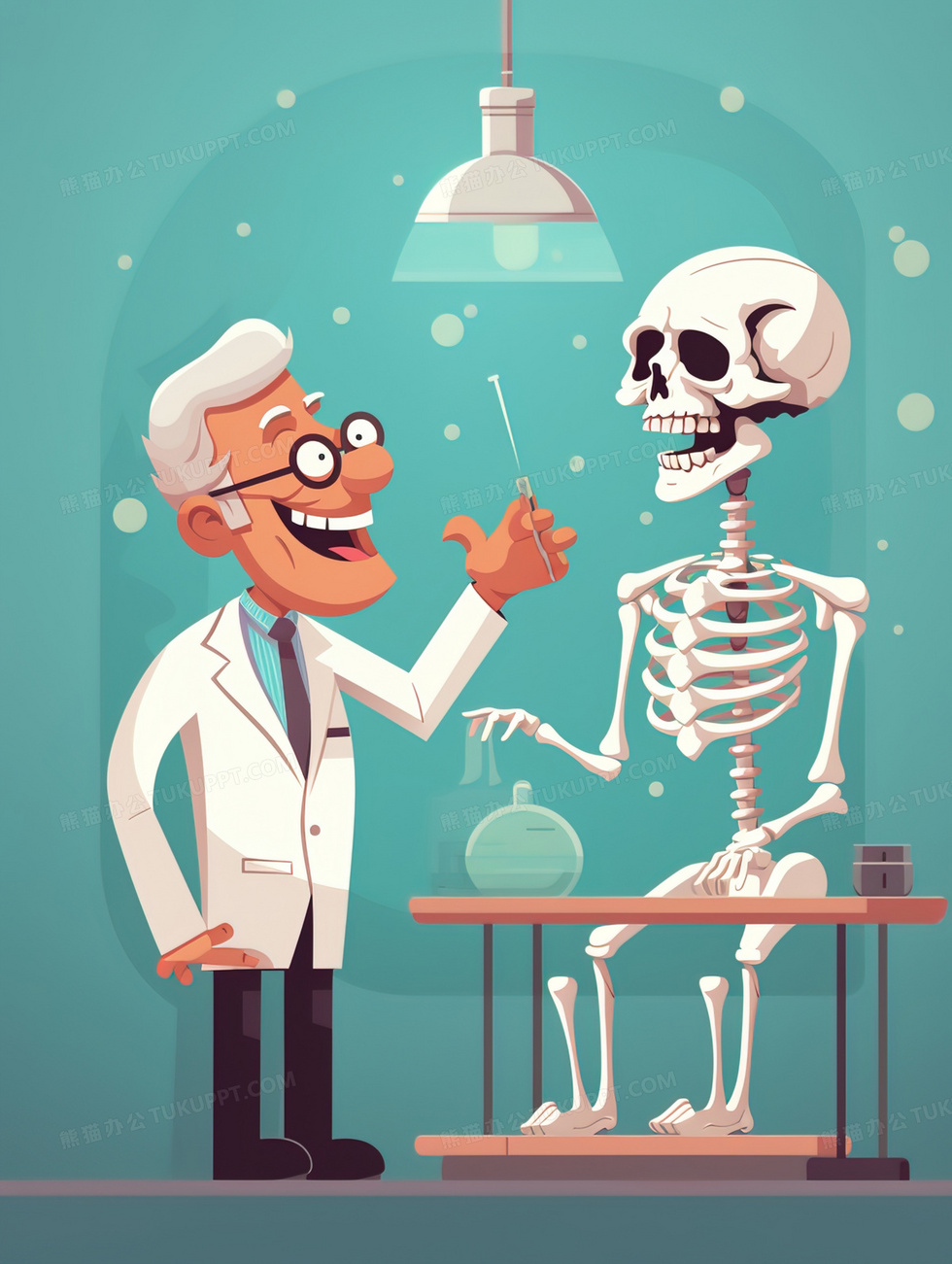 本作品内容为白发医生研究人体骨架插画, 格式为 jpg, 大小2 MB, 图片尺寸为1856 x 2464, 源文件无水印, 欢迎使用熊猫办公。 如认为平台内容涉嫌侵权,可通过邮件:tousu@tukuppt.com提出书面通知,我们将及时处理。