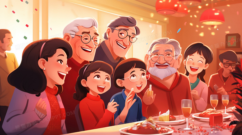 本作品内容为节日一起聚餐的家人们插画, 格式为 jpg, 大小2 MB, 图片尺寸为2912 x 1632, 源文件无水印, 欢迎使用熊猫办公。 如认为平台内容涉嫌侵权,可通过邮件:tousu@tukuppt.com提出书面通知,我们将及时处理。