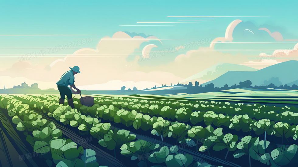 本作品内容为田野菜地里劳作的农民插画, 格式为 jpg, 大小2 MB, 图片尺寸为2912 x 1632, 源文件无水印, 欢迎使用熊猫办公。 如认为平台内容涉嫌侵权,可通过邮件:tousu@tukuppt.com提出书面通知,我们将及时处理。