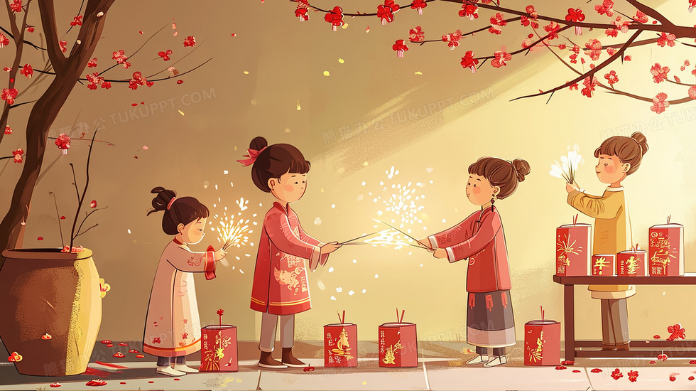 本作品内容为春节放烟花的孩子们插画, 格式为 jpg, 大小3 MB, 图片尺寸为2912 x 1632, 源文件无水印, 欢迎使用熊猫办公。 如认为平台内容涉嫌侵权,可通过邮件:tousu@tukuppt.com提出书面通知,我们将及时处理。