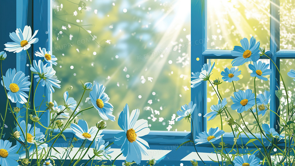 本作品内容为窗前绽放的花朵插画, 格式为 jpg, 大小3 MB, 图片尺寸为2912 x 1632, 源文件无水印, 欢迎使用熊猫办公。 如认为平台内容涉嫌侵权,可通过邮件:tousu@tukuppt.com提出书面通知,我们将及时处理。