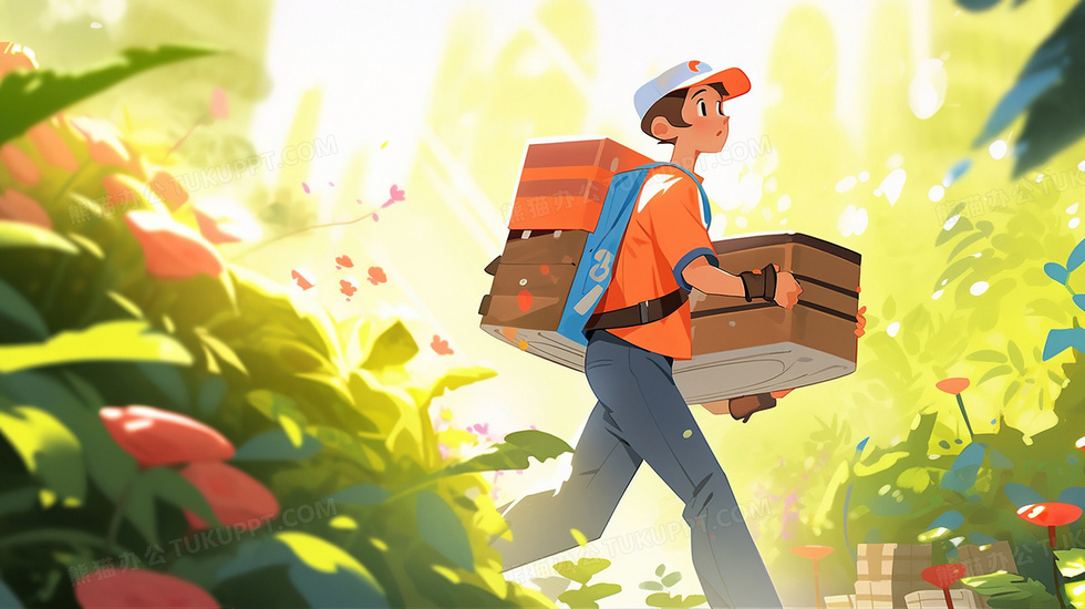 本作品内容为背着外卖箱奔跑送货的快递员插画, 格式为 jpg, 大小2 MB, 图片尺寸为2912 x 1632, 源文件无水印, 欢迎使用熊猫办公。 如认为平台内容涉嫌侵权,可通过邮件:tousu@tukuppt.com提出书面通知,我们将及时处理。