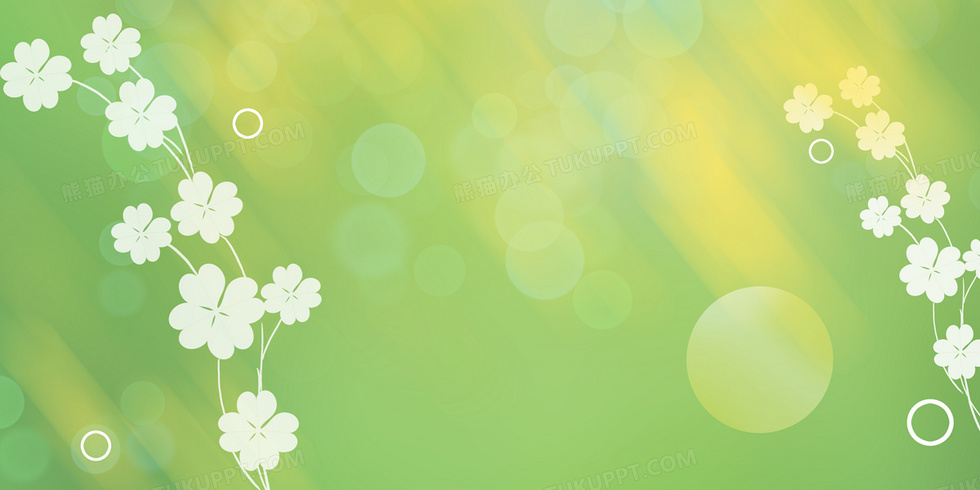 本作品内容为简约清新四叶草背景, 格式为 psd, 大小28 MB, 图片尺寸为4724 x 2362, 作品中背景图片无需修改, 源文件无水印,可以直接使用, 欢迎使用熊猫办公。 如认为平台内容涉嫌侵权,可通过邮件:tousu@tukuppt.com提出书面通知,我们将及时处理。