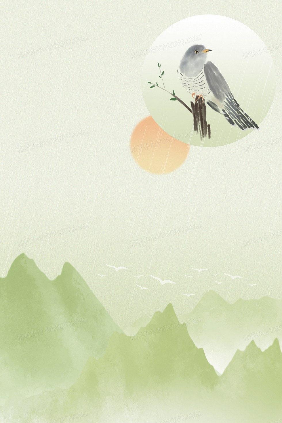 本作品内容为绿色国风节气谷雨合成背景, 格式为 psd, 大小72 MB, 图片尺寸为3543 x 5314, 作品中背景图片无需修改, 源文件无水印,可以直接使用, 欢迎使用熊猫办公。 如认为平台内容涉嫌侵权,可通过邮件:tousu@tukuppt.com提出书面通知,我们将及时处理。