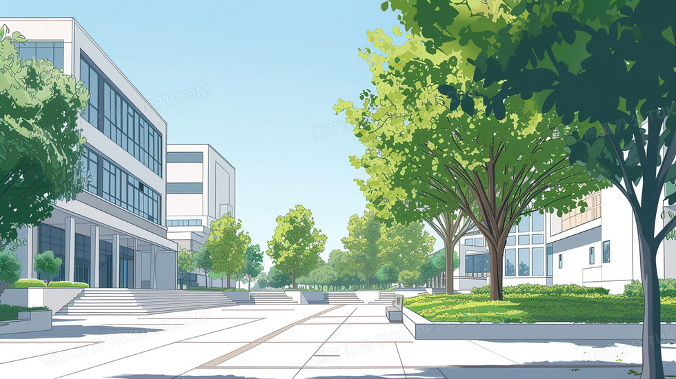 本作品内容为学校教学楼室外景观插画, 格式为 jpg, 大小3 MB, 图片尺寸为2912 x 1632, 源文件无水印, 欢迎使用熊猫办公。 如认为平台内容涉嫌侵权,可通过邮件:tousu@tukuppt.com提出书面通知,我们将及时处理。