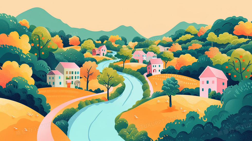 本作品内容为山林河流旁的山城小镇插画, 格式为 jpg, 大小3 MB, 图片尺寸为2912 x 1632, 源文件无水印, 欢迎使用熊猫办公。 如认为平台内容涉嫌侵权,可通过邮件:tousu@tukuppt.com提出书面通知,我们将及时处理。