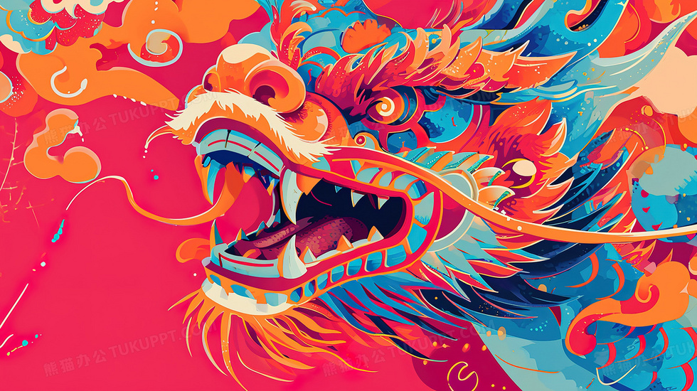 本作品内容为彩色扁平剪纸风中国龙插画, 格式为 jpg, 大小4 MB, 图片尺寸为2912 x 1632, 源文件无水印, 欢迎使用熊猫办公。 如认为平台内容涉嫌侵权,可通过邮件:tousu@tukuppt.com提出书面通知,我们将及时处理。
