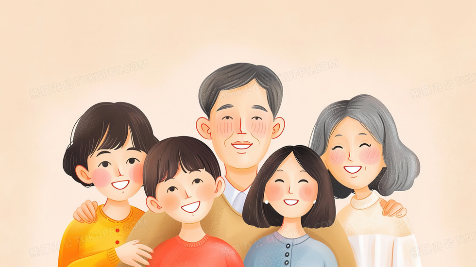 本作品内容为温馨幸福的一家人合影插画, 格式为 jpg, 大小2 MB, 图片尺寸为2912 x 1632, 源文件无水印, 欢迎使用熊猫办公。 如认为平台内容涉嫌侵权,可通过邮件:tousu@tukuppt.com提出书面通知,我们将及时处理。