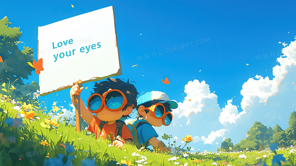 本作品内容为蓝天白云卡通小孩爱眼日宣传插画, 格式为 jpg, 大小3 MB, 图片尺寸为2912 x 1632, 源文件无水印, 欢迎使用熊猫办公。 如认为平台内容涉嫌侵权,可通过邮件:tousu@tukuppt.com提出书面通知,我们将及时处理。