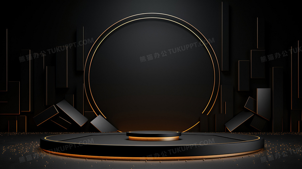 本作品内容为黑金大气商务展台电商背景, 格式为 jpg, 大小2 MB, 图片尺寸为2912 x 1632, 作品中背景图片无需修改, 源文件无水印,可以直接使用, 欢迎使用熊猫办公。 如认为平台内容涉嫌侵权,可通过邮件:tousu@tukuppt.com提出书面通知,我们将及时处理。