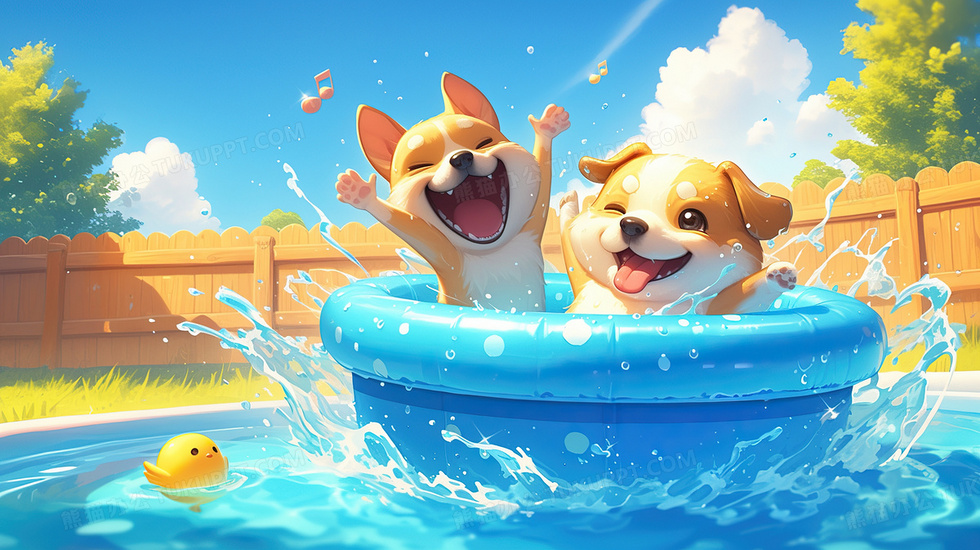 本作品内容为夏日小狗泳池清凉插画, 格式为 jpg, 大小3 MB, 图片尺寸为2912 x 1632, 源文件无水印, 欢迎使用熊猫办公。 如认为平台内容涉嫌侵权,可通过邮件:tousu@tukuppt.com提出书面通知,我们将及时处理。
